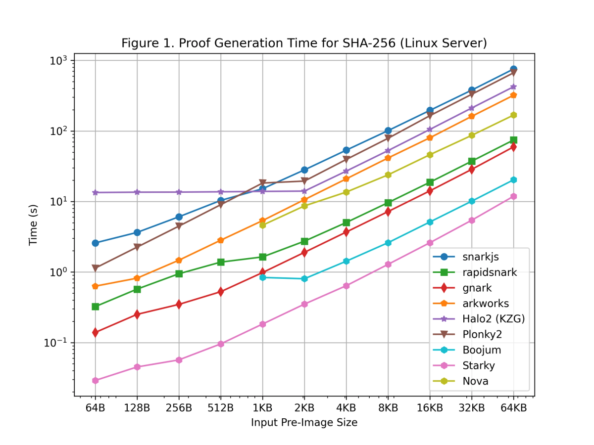 To measure the proof generation time (and other key metrics related to performance) of the network we partnered with Celer, a team with deep experience in benchmarking and profiling multiple proving systems. In the image below you can see that Boojum significantly outperforms the majority of the systems profiled. The results speak for themselves: βββββο»Ώβο»Ώββββββο»Ώο»Ώβο»Ώβββββββββο»Ώββββββο»Ώββββββο»Ώβββββββο»Ώβο»Ώββββββο»Ώββββββο»Ώβββο»Ώββββο»Ώβββββββο»Ώο»Ώββββββο»Ώββββββββββο»Ώβββββββββββββββο»Ώβββββββο»Ώβββββο»Ώβο»Ώβο»Ώβο»Ώββββο»Ώββββο»Ώββο»Ώβββββββο»Ώββο»Ώβββββββο»Ώβββο»Ώβββο»Ώβββββββο»Ώβο»Ώββββββο»Ώββο»Ώβο»Ώββββββο»Ώββββββο»Ώβββο»Ώββββο»Ώββο»Ώβο»Ώβο»Ώβββο»Ώββββββββββββο»Ώο»Ώββο»Ώο»Ώββββββο»Ώββο»Ώββββββββο»Ώββο»Ώββββο»Ώο»Ώβββββββββββββο»Ώββββο»Ώο»Ώββο»Ώβββο»Ώο»Ώβββββββββο»Ώο»Ώββο»Ώβββο»Ώβββββββο»Ώβο»Ώββββββο»Ώββο»Ώβββββββο»Ώββββββββο»Ώο»Ώββο»Ώββο»Ώβο»Ώβββββββββο»Ώο»Ώββο»Ώβββο»Ώβββο»Ώβββο»Ώβο»Ώβο»Ώβββββββο»Ώββββββββο»Ώββο»Ώβββο»Ώββββββββββββο»Ώββο»Ώβββο»Ώβββο»Ώβββββο»Ώββο»Ώββο»Ώβββο»Ώββββββββββββο»Ώββο»Ώβββο»Ώβββο»Ώβββββββο»Ώβββο»Ώβο»Ώβο»Ώβββο»Ώβββββββββο»Ώβο»Ώβββββββο»Ώβο»Ώβο»Ώβββο»Ώβββο»Ώβββββββο»Ώο»Ώβββββββο»Ώβββο»Ώο»Ώβββο»Ώβο»Ώβο»Ώβο»Ώβββββββο»Ώβββββββο»Ώο»Ώββο»Ώβββββββββο»Ώβββββββββββββο»Ώβββο»Ώβββββββο»Ώββββββββο»Ώο»Ώβββο»Ώβββββο»Ώβββββββο»Ώβο»Ώβββββββββο»Ώβο»Ώβββββββββο»Ώβββο»Ώβββο»Ώβο»Ώβββββο»Ώβββο»Ώβββββββββο»Ώβββββββββββββββββββο»Ώβο»Ώβββββββο»Ώβββο»Ώβββββββο»Ώββββββββο»Ώββββο»Ώββββββββββο»Ώββββββο»Ώββββββββο»Ώββββββο»Ώββββββββο»Ώο»Ώβββο»Ώβββββο»Ώβββββββο»Ώβο»Ώβββββββββο»Ώβο»Ώβββββββββο»Ώβββο»Ώβββββββο»Ώβββββββο»Ώβο»Ώβο»Ώβββββββο»Ώβββο»Ώβββββββββββο»Ώβββο»Ώβββββββο»Ώβββο»Ώβββββββο»Ώββββββββο»Ώββο»Ώβββββββο»Ώβββο»Ώβββο»Ώο»Ώο»Ώβββββββββο»Ώβο»Ώβββββββββο»Ώββββο»Ώββο»Ώο»Ώββο»Ώβββββο»Ώβο»Ώβο»Ώβο»Ώββββο»Ώββββο»Ώββο»Ώβββββββο»Ώββο»Ώβββββββο»Ώβββο»Ώβββο»Ώβββββββο»Ώβο»Ώββββββο»Ώββο»Ώβο»Ώββββββο»Ώββββββο»Ώβββο»Ώββββο»Ώββο»Ώβο»Ώβο»Ώβββο»Ώββββββββββββο»Ώο»Ώβββββββββββββο»Ώο»Ώββο»Ώβββο»Ώβββο»Ώβββο»Ώβο»Ώβο»Ώβββββββο»Ώββββββββο»Ώββο»Ώβββο»Ώββββββββββββο»Ώββο»Ώβββο»Ώβββο»Ώβββββο»Ώββο»Ώββο»Ώβββο»Ώββββββββββββο»Ώββο»Ώβββο»Ώβββο»Ώβββββββο»Ώβββο»Ώβο»Ώβο»Ώβββο»Ώβββββββββο»Ώβο»Ώβββββββββββο»Ώβββο»Ώβββο»Ώβββββββο»Ώο»Ώβββββββο»Ώβββο»Ώο»Ώβββο»Ώβββββο»Ώβββββββο»Ώβββββββο»Ώο»Ώββο»Ώβββββββββο»Ώβββββββββββββο»Ώβββο»Ώβββββββο»Ώββββββββο»Ώο»Ώβββο»Ώβββββο»Ώβββββββο»Ώβο»Ώβββββββββο»Ώβο»Ώβββββββββο»Ώβββο»Ώβββο»Ώβο»Ώβββββο»Ώβββο»Ώβββββββββο»Ώβββββββββββββββββββο»Ώβο»Ώβββββββο»Ώβββο»Ώβββββββο»Ώββββββββο»Ώββββο»Ώββββββββββο»Ώββββββο»Ώββββββββο»Ώββββββο»Ώββββββββο»Ώο»Ώβββο»Ώβββββο»Ώβββββββο»Ώβο»Ώβββββββββο»Ώβο»Ώβββββββββο»Ώβββο»Ώβββββββο»Ώβββββββο»Ώβο»Ώβο»Ώβββββββο»Ώβββο»Ώβββββββββββο»Ώβββο»Ώβββββββο»Ώβββο»Ώβββββββο»Ώββββββββο»Ώββο»Ώβββββββο»Ώβββο»Ώβββββββο»Ώβββββββο»Ώβββο»Ώβο»Ώβο»Ώβββββββββο»Ώβο»Ώβββββββο»Ώβββββββο»Ώο»Ώββο»Ώβββο»Ώββββββββο»Ώββββββο»Ώβο»Ώβββββββββββββββββο»Ώο»Ώβour implementation demonstrates world-class proving performance, and to the best of our knowledge this is the fastest proof system used in production.βββββο»Ώβο»Ώββββββο»Ώο»Ώβο»Ώβββββββββο»Ώββββββο»Ώββββββο»Ώβββββββο»Ώβο»Ώββββββο»Ώββββββο»Ώβββο»Ώββββο»Ώβββββββο»Ώο»Ώββββββο»Ώββββββββββο»Ώβββββββββββββββο»Ώβββββββο»Ώβββββο»Ώβο»Ώβο»Ώβο»Ώββββο»Ώββββο»Ώββο»Ώβββββββο»Ώββο»Ώβββββββο»Ώβββο»Ώβββο»Ώβββββββο»Ώβο»Ώββββββο»Ώββο»Ώβο»Ώββββββο»Ώββββββο»Ώ