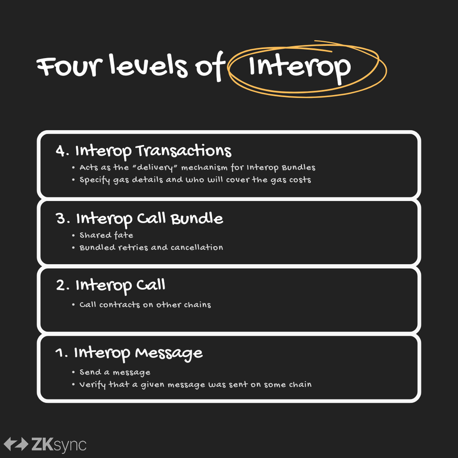 There are several types of cross-chain transactions that vary in complexity. To understand how ZKsyncβs native interop will work, we need to explore it at βββββο»Ώβο»Ώββββββο»Ώο»Ώβο»Ώβββββββββο»Ώββββββο»Ώββββββο»Ώβββββββο»Ώβο»Ώββββββο»Ώββββββο»Ώβββο»Ώββββο»Ώβββββββο»Ώο»Ώββββββο»Ώββββββββββο»Ώβββββββββββββββο»Ώβββββββο»Ώβββββο»Ώβο»Ώβο»Ώβο»Ώββββο»Ώββββο»Ώββο»Ώβββββββο»Ώββο»Ώβββββββο»Ώβββο»Ώβββο»Ώβββββββο»Ώβο»Ώββββββο»Ώββο»Ώβο»Ώββββββο»Ώββββββο»Ώβββο»Ώββββο»Ώββο»Ώβο»Ώβο»Ώβββο»Ώββββββββββββο»Ώο»Ώββο»Ώο»Ώββββββο»Ώββο»Ώββββββββο»Ώββο»Ώββββο»Ώο»Ώβββββββββββββο»Ώββββο»Ώο»Ώββο»Ώβββο»Ώο»Ώβββββββββο»Ώο»Ώββο»Ώβββο»Ώβββββββο»Ώβο»Ώββββββο»Ώββο»Ώβββββββο»Ώββββββββο»Ώο»Ώββο»Ώββο»Ώβο»Ώβββββββββο»Ώο»Ώββββββο»Ώβββββο»Ώβββββο»Ώβββο»Ώβββο»Ώβββο»Ώββββο»Ώββο»Ώβββο»Ώβο»Ώββββββββββο»Ώββο»Ώβββββο»Ώβββββο»Ώββββο»Ώββο»Ώβββο»Ώβββββο»Ώβο»Ώββββο»Ώββο»Ώβββββββο»Ώβββο»Ώβββββββο»Ώβββββββο»Ώβββο»Ώβο»Ώβο»Ώβββββββββββο»Ώβο»Ώβο»Ώβββο»Ώβββο»Ώβββββββο»Ώο»Ώβββββββο»Ώβββο»Ώο»Ώβββο»Ώβο»Ώβο»Ώβο»Ώβββββββο»Ώβββββββο»Ώο»Ώββο»Ώβββββββββο»Ώβββββββββββββο»Ώβββο»Ώβββββββο»Ώββββββββο»Ώο»Ώβββο»Ώβββββο»Ώβββββββο»Ώβο»Ώβββββββββο»Ώβο»Ώβββββββββο»Ώβββο»Ώβββο»Ώβββο»Ώβββο»Ώβββο»Ώβββο»Ώβββββο»Ώβο»Ώβββο»Ώβο»Ώβββββββββββο»Ώβββββββββο»Ώβββο»Ώβββββββο»Ώββββββββο»Ώββββο»Ώββββββββββο»Ώββββββο»Ώββββββββο»Ώββββββο»Ώββββββββο»Ώο»Ώβββο»Ώβββββο»Ώβββββββο»Ώβο»Ώβββββββββο»Ώβο»Ώβββββββββο»Ώβββο»Ώβββο»Ώβββββο»Ώβββββο»Ώβββββββο»Ώβββββββββββο»Ώβββββββο»Ώβο»Ώβββββββββο»Ώβββο»Ώβββββββο»Ώββββββββο»Ώββο»Ώβββββββο»Ώβββο»Ώβββο»Ώο»Ώο»Ώβββββββββο»Ώβο»Ώβββββββββο»Ώββββο»Ώββο»Ώο»Ώββο»Ώβββββο»Ώβο»Ώβο»Ώβο»Ώββββο»Ώββββο»Ώββο»Ώβββββββο»Ώββο»Ώβββββββο»Ώβββο»Ώβββο»Ώβββββββο»Ώβο»Ώββββββο»Ώββο»Ώβο»Ώββββββο»Ώββββββο»Ώβββο»Ώββββο»Ώββο»Ώβο»Ώβο»Ώβββο»Ώββββββββββββο»Ώο»Ώβββββββββββββο»Ώο»Ώββββββο»Ώβββββο»Ώβββββο»Ώβββο»Ώβββο»Ώβββο»Ώββββο»Ώββο»Ώβββο»Ώβο»Ώββββββββββο»Ώββο»Ώβββββο»Ώβββββο»Ώββββο»Ώββο»Ώβββο»Ώβββββο»Ώβο»Ώββββο»Ώββο»Ώβββββββο»Ώβββο»Ώβββββββο»Ώβββββββο»Ώβββο»Ώβο»Ώβο»Ώβββββββββββββββο»Ώβββο»Ώβββο»Ώβββββββο»Ώο»Ώβββββββο»Ώβββο»Ώο»Ώβββο»Ώβββββο»Ώβββββββο»Ώβββββββο»Ώο»Ώββο»Ώβββββββββο»Ώβββββββββββββο»Ώβββο»Ώβββββββο»Ώββββββββο»Ώο»Ώβββο»Ώβββββο»Ώβββββββο»Ώβο»Ώβββββββββο»Ώβο»Ώβββββββββο»Ώβββο»Ώβββο»Ώβββο»Ώβββο»Ώβββο»Ώβββο»Ώβββββο»Ώβο»Ώβββο»Ώβο»Ώβββββββββββο»Ώβββββββββο»Ώβββο»Ώβββββββο»Ώββββββββο»Ώββββο»Ώββββββββββο»Ώββββββο»Ώββββββββο»Ώββββββο»Ώββββββββο»Ώο»Ώβββο»Ώβββββο»Ώβββββββο»Ώβο»Ώβββββββββο»Ώβο»Ώβββββββββο»Ώβββο»Ώβββο»Ώβββββο»Ώβββββο»Ώβββββββο»Ώβββββββββββο»Ώβββββββο»Ώβο»Ώβββββββββο»Ώβββο»Ώβββββββο»Ώββββββββο»Ώββο»Ώβββββββο»Ώβββο»Ώβββββββο»Ώβββββββο»Ώβββο»Ώβο»Ώβο»Ώβββββββββο»Ώβο»Ώβββββββο»Ώβββββββο»Ώο»Ώββο»Ώβββο»Ώββββββββο»Ώββββββο»Ώβο»Ώβββββββββββββββββο»Ώο»Ώβfour levelsβββββο»Ώβο»Ώββββββο»Ώο»Ώβο»Ώβββββββββο»Ώββββββο»Ώββββββο»Ώβββββββο»Ώβο»Ώββββββο»Ώββββββο»Ώβββο»Ώββββο»Ώβββββββο»Ώο»Ώββββββο»Ώββββββββββο»Ώβββββββββββββββο»Ώβββββββο»Ώβββββο»Ώβο»Ώβο»Ώβο»Ώββββο»Ώββββο»Ώββο»Ώβββββββο»Ώββο»Ώβββββββο»Ώβββο»Ώβββο»Ώβββββββο»Ώβο»Ώββββββο»Ώββο»Ώβο»Ώββββββο»Ώββββββο»Ώβββο»Ώββββο»Ώββο»Ώβο»Ώβο»Ώβββο»Ώββββββββββββο»Ώο»Ώββο»Ώο»Ώββββββο»Ώββο»Ώββββββββο»Ώββο»Ώββββο»Ώο»Ώβββββββββββββο»Ώββββο»Ώο»Ώββο»Ώβββο»Ώο»Ώβββββββββο»Ώο»Ώββο»Ώβββο