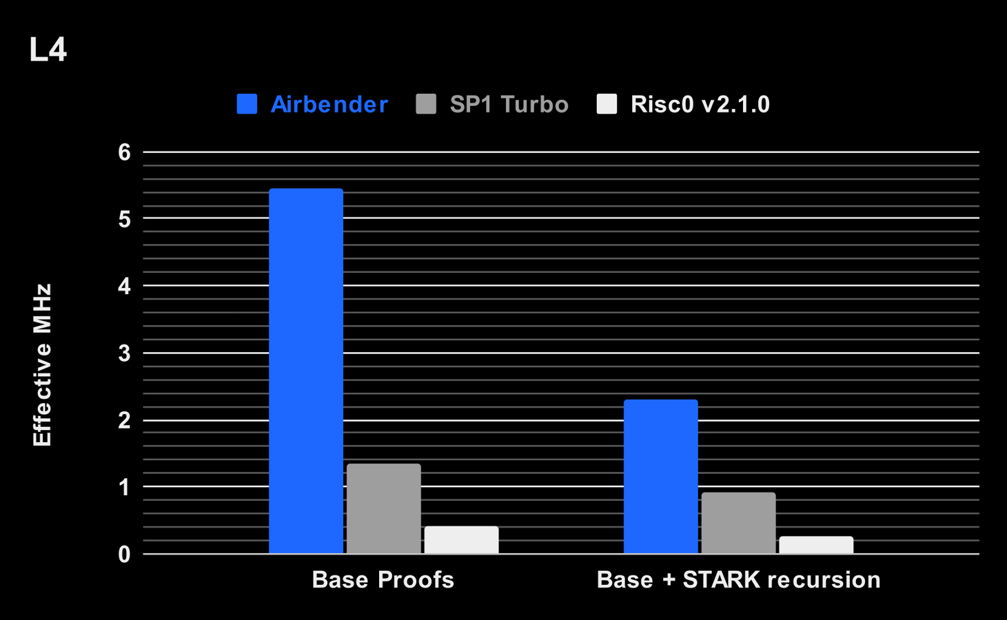Airbender achieves comparable performance with a fraction of the hardware. More efficient proving doesn’t just mean lower costs. It’s what enables the future we are building toward: a decentralized network of chains that coordinate, settle, and interoperate in real time.